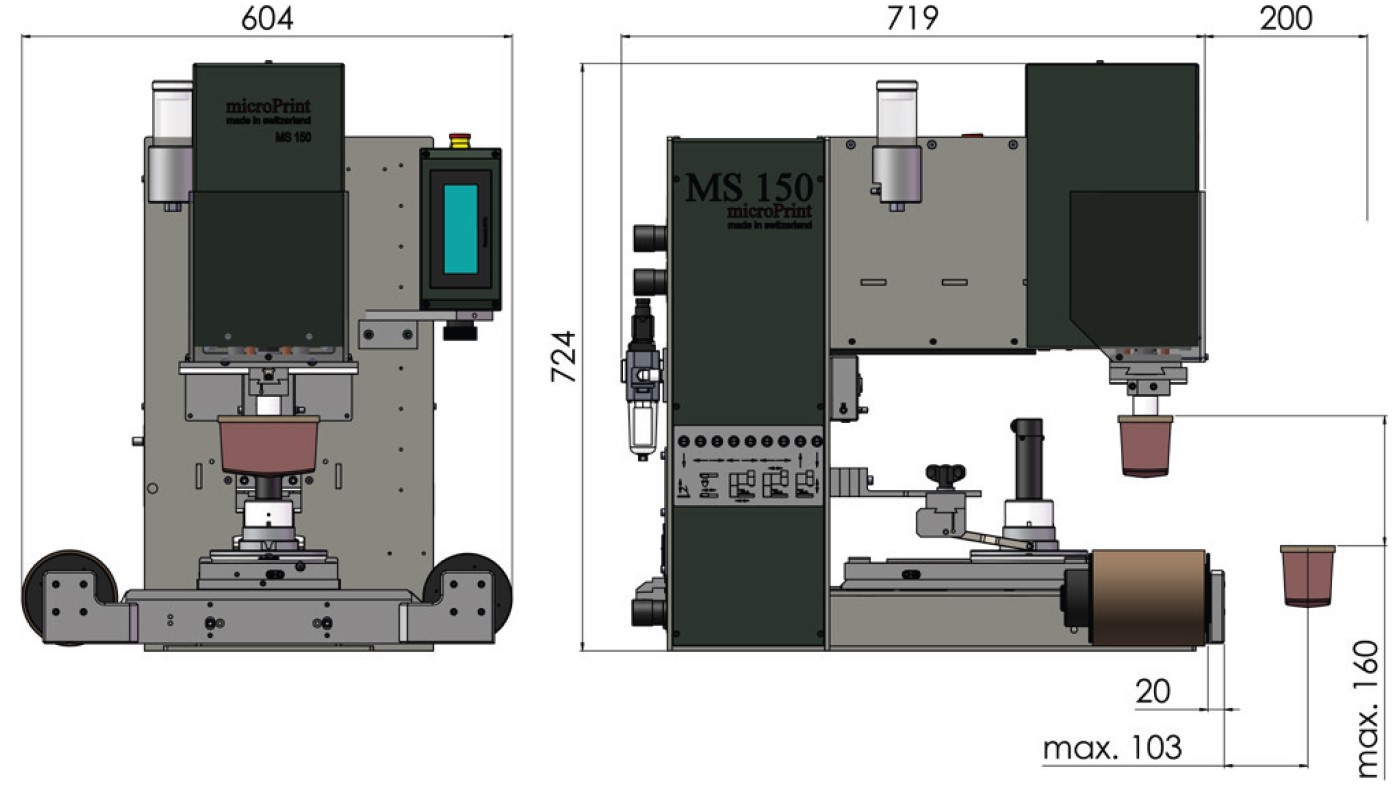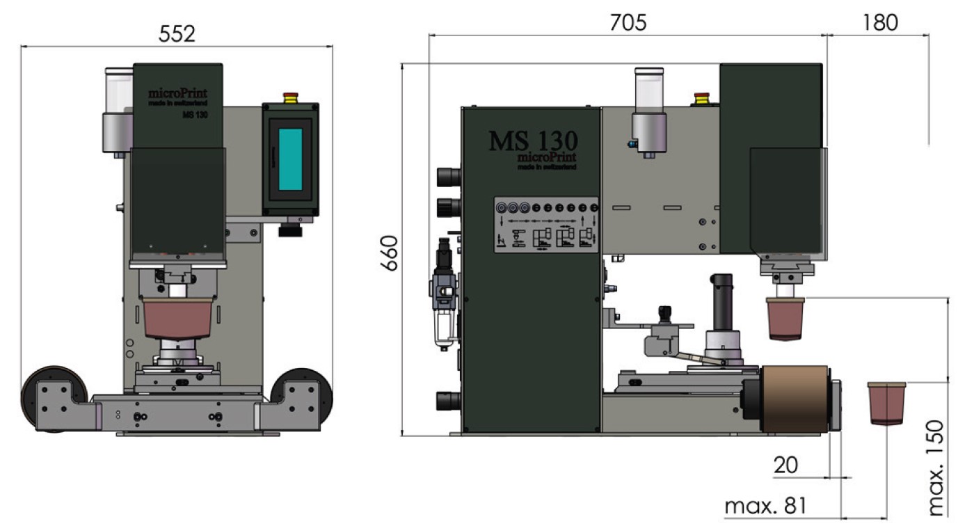 Ink cup [number x Ø in mm] | 1x56 / 1x70 / 1x86 / 1x120 / 1x140 |