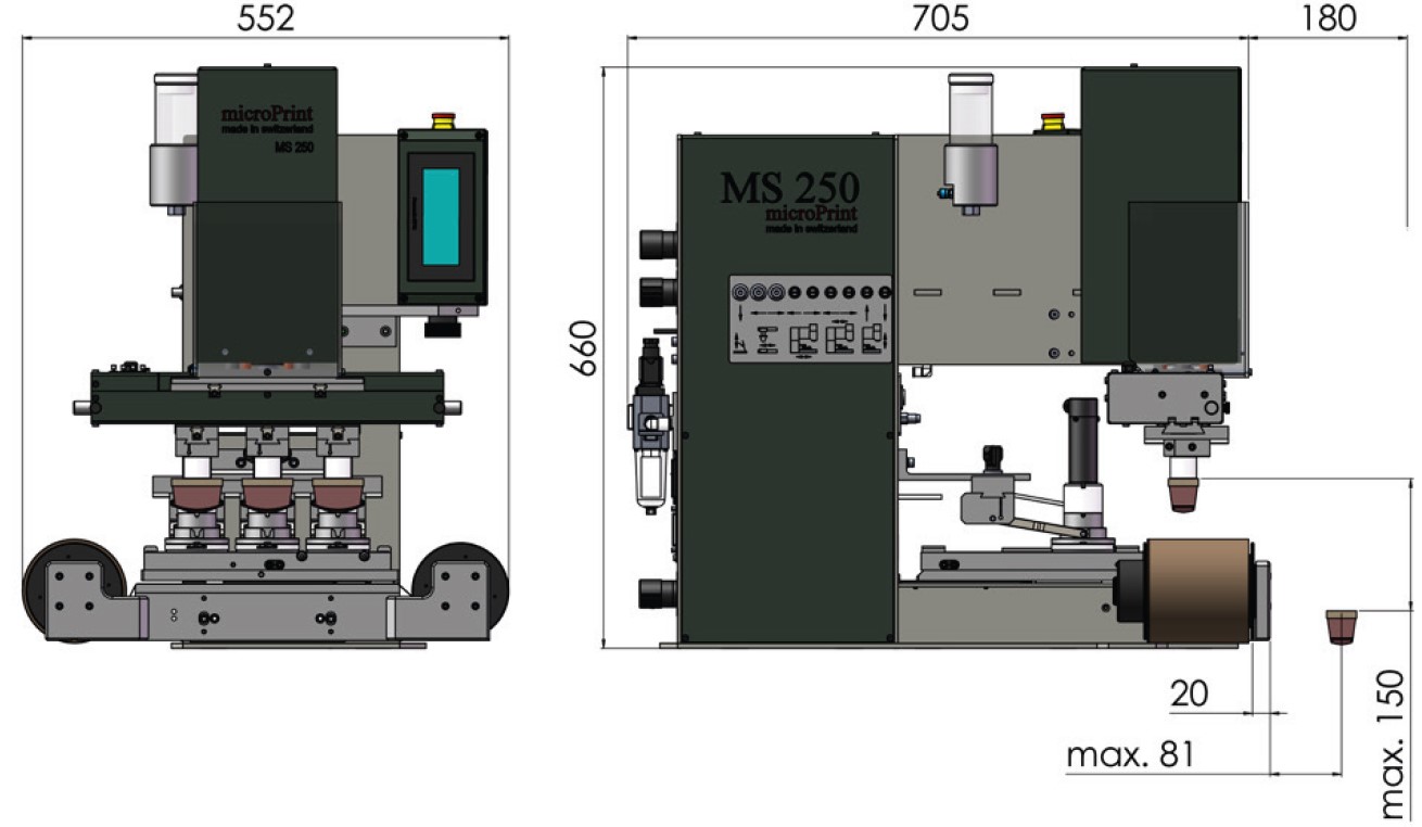 The MS line includes conventional pneumatic pad printing machines which can print up to