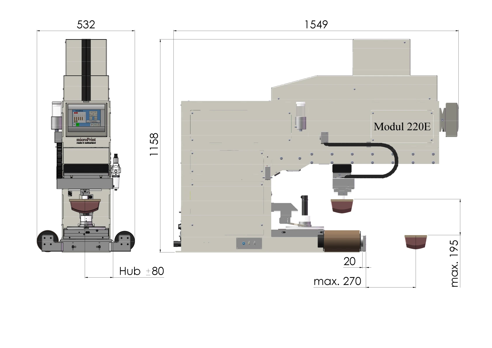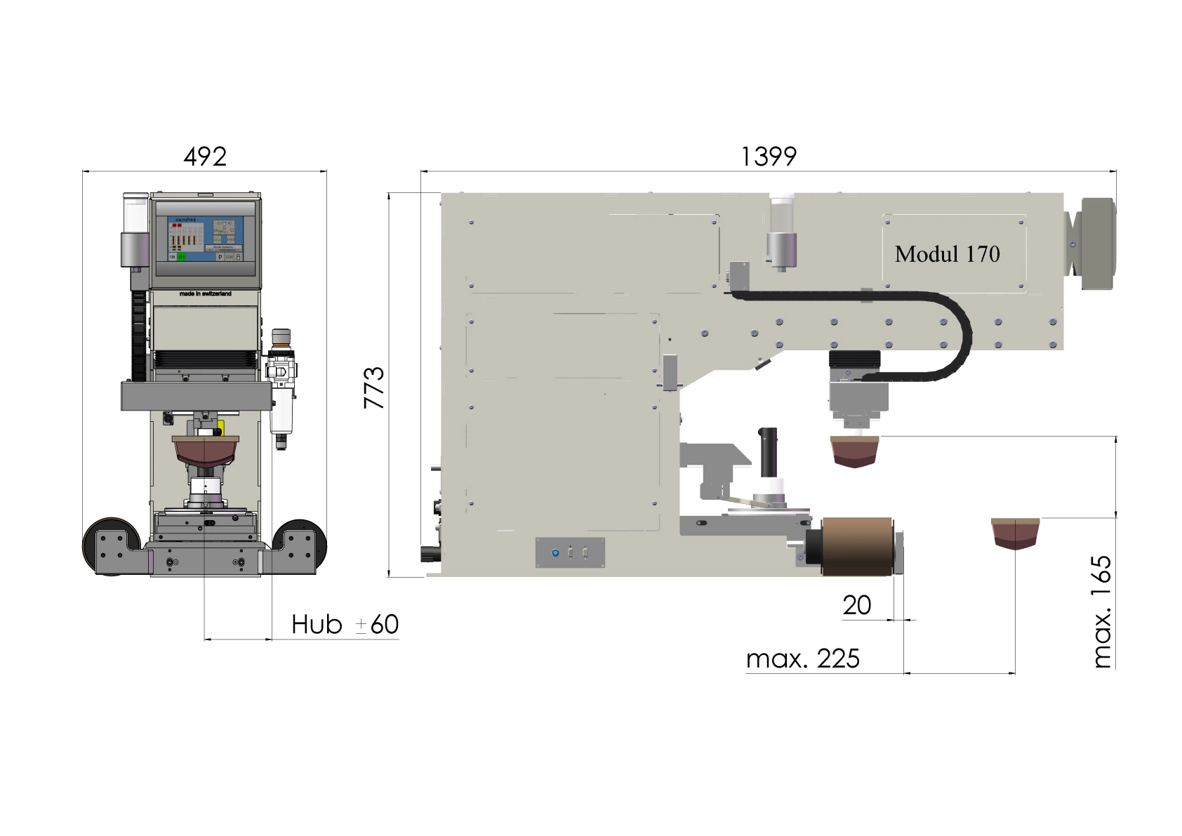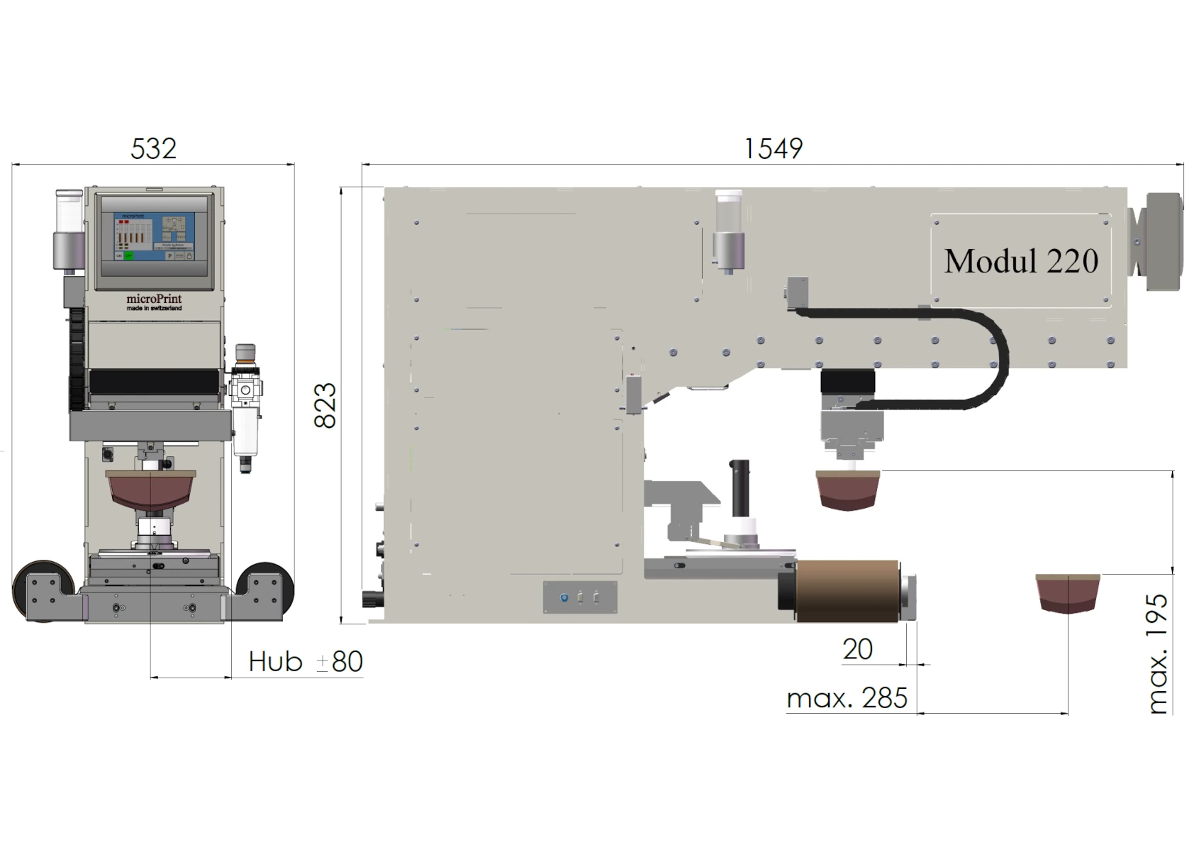 Les machines de la série Modul sont des machines de tampographie monochromes. Elles utilisent un système de répartition d’encre fermé. La taille maximale des encriers est de 200 mm. La pression de contact des encriers raclants magnétiques peut être renforcée par un support pneumatique sur demande.