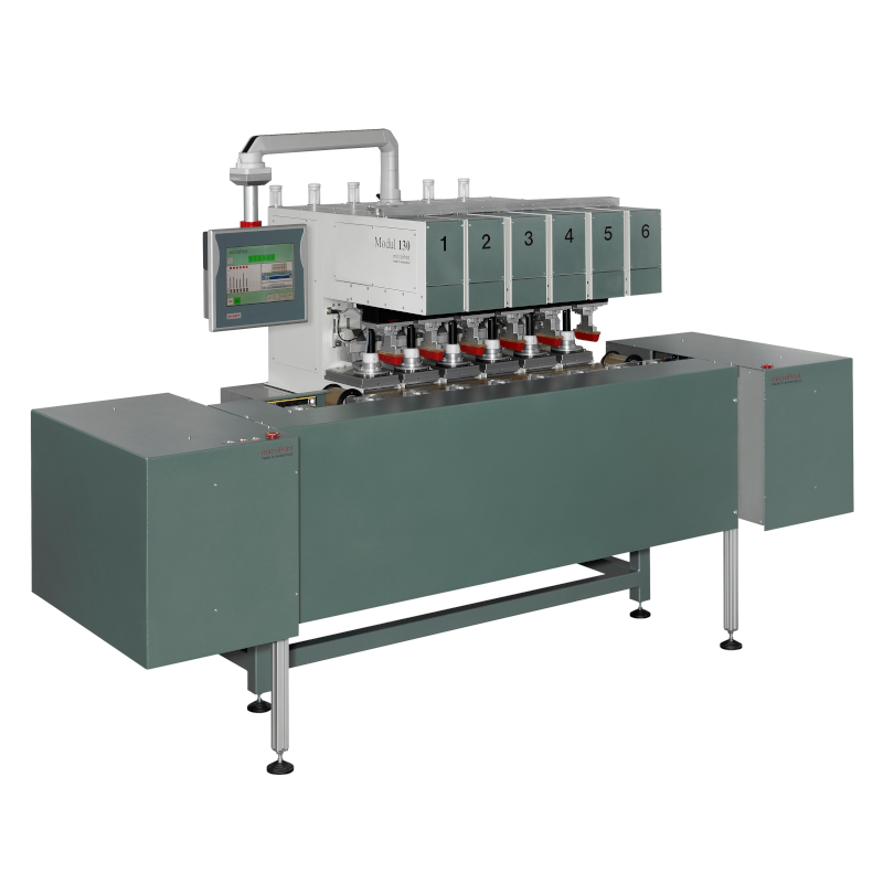 La série Modul propose des machines de tampographie monochromes avec un positionnement électrique et une course de tampon pneumatique ou électrique au choix. Le réglage des positions d’impression se fait au moyen de l’écran tactile graphique en couleur. Le processus d’impression peut être programmé librement. De nombreuses images d’impression peuvent être positionnées sur un cliché. Ces images peuvent être adressées individuellement pour composer des images d’impression complexes ou différentes variantes. Selon les exigences, plusieurs machines Modul peuvent être regroupées dans une installation et commandées par le biais d’un écran. Il est ainsi possible d’obtenir un nombre presque illimité de couleurs avec des tailles d’encriers allant jusqu’à 200 mm. Les données d’ordre sont enregistrées de manière centralisée, ce qui réduit considérablement les temps de préparation. Un système en amont peut corriger en temps réel les positions d’impression au moyen d’une caméra ou d’une interface. Il existe de nombreuses options pour la manutention des pièces, du décalage pneumatique et du pivotement électrique sur 2 axes aux pinces à vide et aux capteurs de pièces.